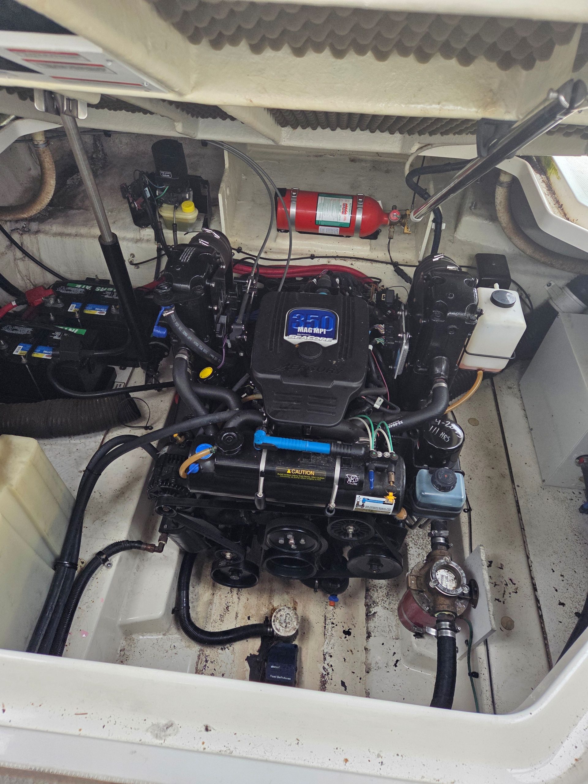 Very clean 26ft boat that’s ready to cruise around the he sound. With only 130 hours on the Mercruiser 350 Mag MPI and equipped with a sink, Stove, Microwave, fridge, and Marine Head this is a great weekender ready to go.