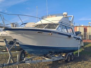 This beautifully maintained 1987 Bayliner Contessa is a rare gem—blending timeless design with a full suite of modern upgrades. The interior has been thoughtfully updated with new upholstery, a freshly outfitted galley featuring a new refrigerator and stove, a functional shower, and a reliable hot water heater for onboard comfort. Power needs are easily handled by the robust 470 Amp-hour battery system with Bluetooth monitoring and shore power connection, giving you extended range and peace of mind while docked or underway.