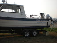 This boat is ready to fish. Two scotty electric downriggers, with working (though older) electronics. It sits on a viable tandem axle trailer, and has recently had its main engine powerhead replaced (with receipts). This is the largest boat C-Dory built, and is ready to get out and on the water.