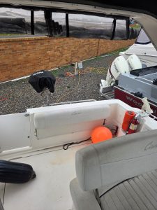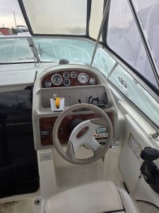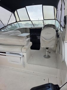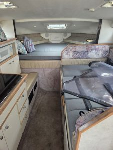 It has a full canvas enclosure. Sleeps 4 to 6.