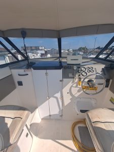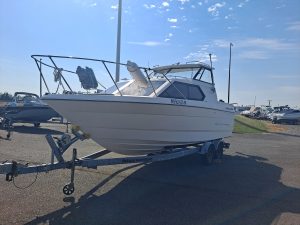 Equipped with a reliable Yamaha 9.9 kicker for trolling and backup power, plus a Humminbird GPS/fishfinder for precise navigation and locating your next catch, this Bayliner is ready for both cruising and fishing adventures. The large cockpit offers plenty of room for gear or relaxing with friends, while Bayliner’s proven hull design ensures a smooth, efficient ride. Whether you’re upgrading from a smaller boat or looking for an affordable cabin cruiser to expand your horizons, this 2452 delivers excellent value and capability in a versatile package.