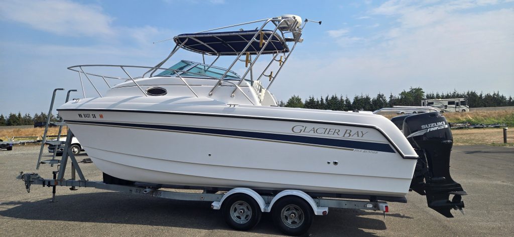 Powered by twin Suzuki 115 hp four-strokes showing fewer than 180 hours, this Isle Runner has seen light, careful use and is ready for many more seasons of reliable performance. The efficient twin setup offers a balance of fuel economy and redundancy that serious boaters appreciate. With clean upholstery, solid gelcoat, and Glacier Bay’s legendary build quality, this 2260 is a standout opportunity—turn-key, seaworthy, and ready to deliver the quiet confidence only a Glacier Bay can.
