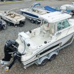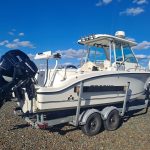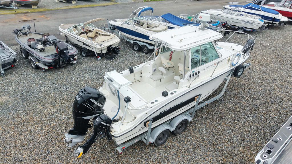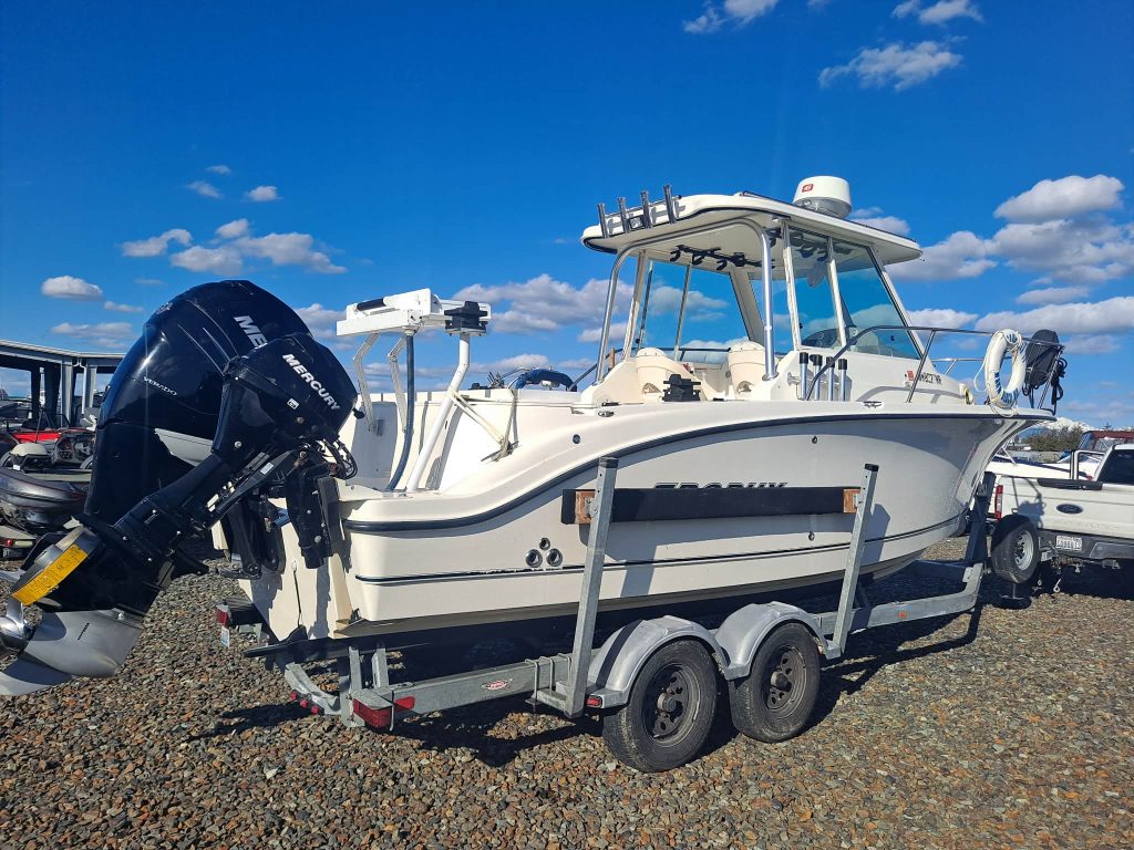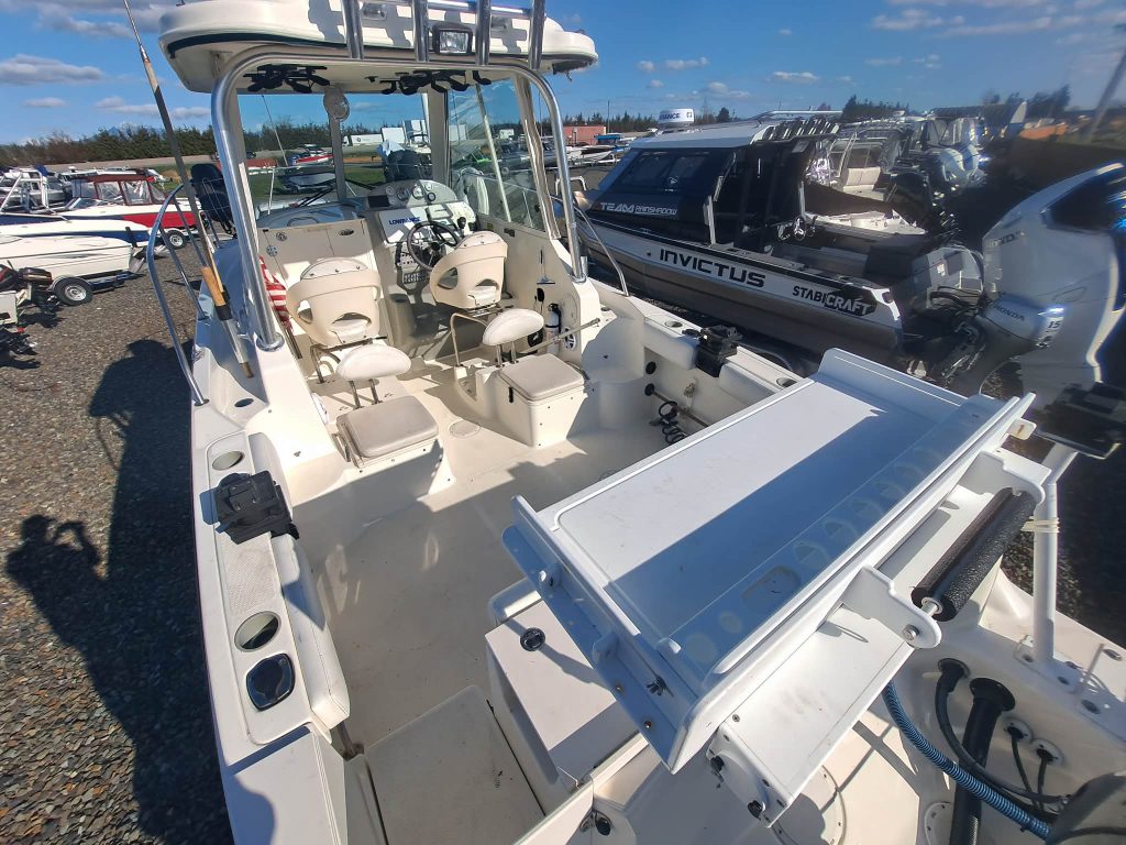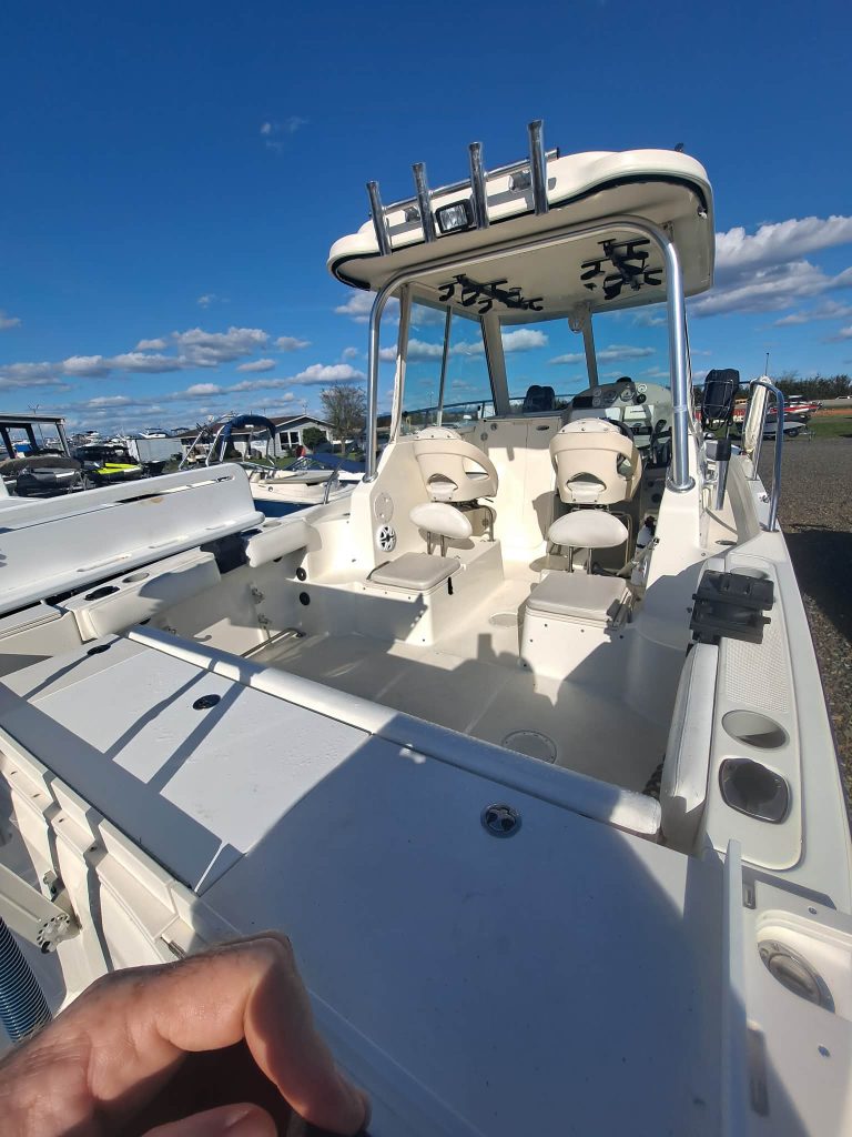 Below deck, the cabin offers a comfortable V-berth along with a plumbed head, making this a capable overnighter for longer trips. Additional features include shore power with inverter, giving you flexibility at the dock or on the hook, and Scotty electric downriggers already installed for serious fishing capability. Whether you’re chasing fish offshore or cruising with the family, this 2502 delivers a strong balance of performance, comfort, and value in a highly sought-after size class. Come down to Boat Country and see this boat today.