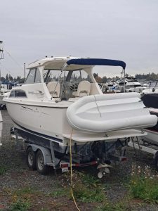 Step aboard this 2008 Bayliner 246 Discovery, a beautifully maintained cruiser offering the perfect balance of comfort, performance, and versatility. Powered by a 350 MAG MPI MerCruiser (480 hours) paired with a Bravo III dual prop drive, this boat delivers strong, efficient performance on the water. Equipped with a newer 12″ Garmin GPS/fishfinder, a full back deck canvas enclosure, and a Dogfish Boats 8′ dinghy, this package is ready for weekend cruising, fishing, or extended adventures on Puget Sound and beyond.