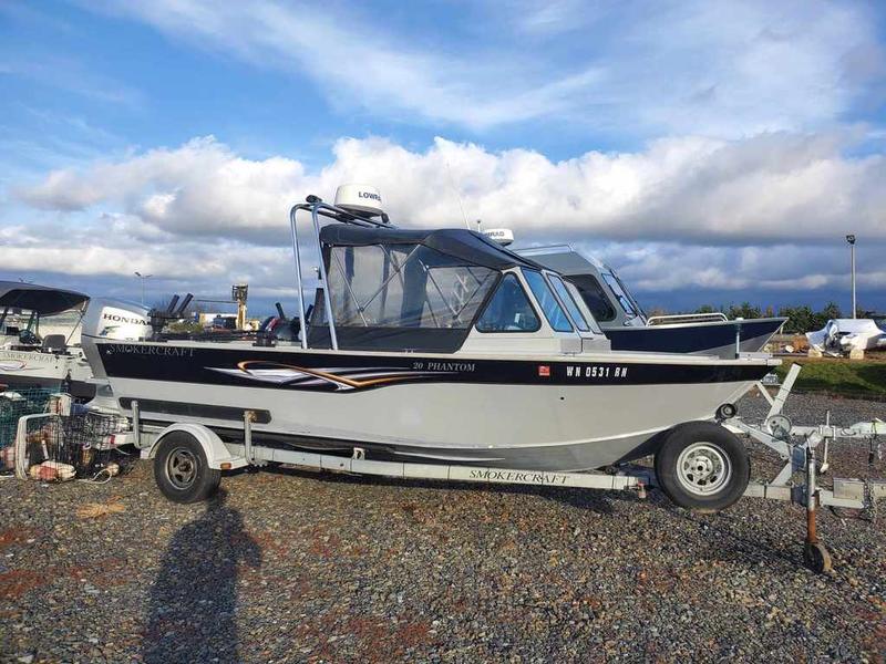 2010 SmokerCraft Phantom 202This boat comes fully loaded, and ready to fish. Complete with a Lowrance 12″ HDS, as well as a 5″ Hook Reveal, paired with a Simrad Radar, this Phantom is the perfect PNW fishing boat. 20′ Plus the offshore bracket, it moves very well with the Honda 135hp main engine, and trolls flawlessly with the Yamaha 9.9hp High Thrust kicker (Electric start, power tilt). This boat comes with almost everything needed to hit the water. Several crab pots, two shrimp pots, Scotty Electric down riggers, down rigger balls, nets, halibut harpoon and gaff, etc. This is a single owner boat, for sale as life changes required. Always parked under cover along with a tarp. Dual battery system with switch. Rear live well and plumbed with a raw water washdown. Mechanical suspension seats for captain and co-captain. This boat is loaded. Come take a look at it!Downriggers, main screen and other accessories not shown are stored inside and protected.