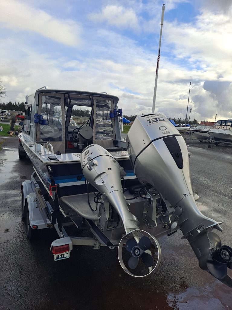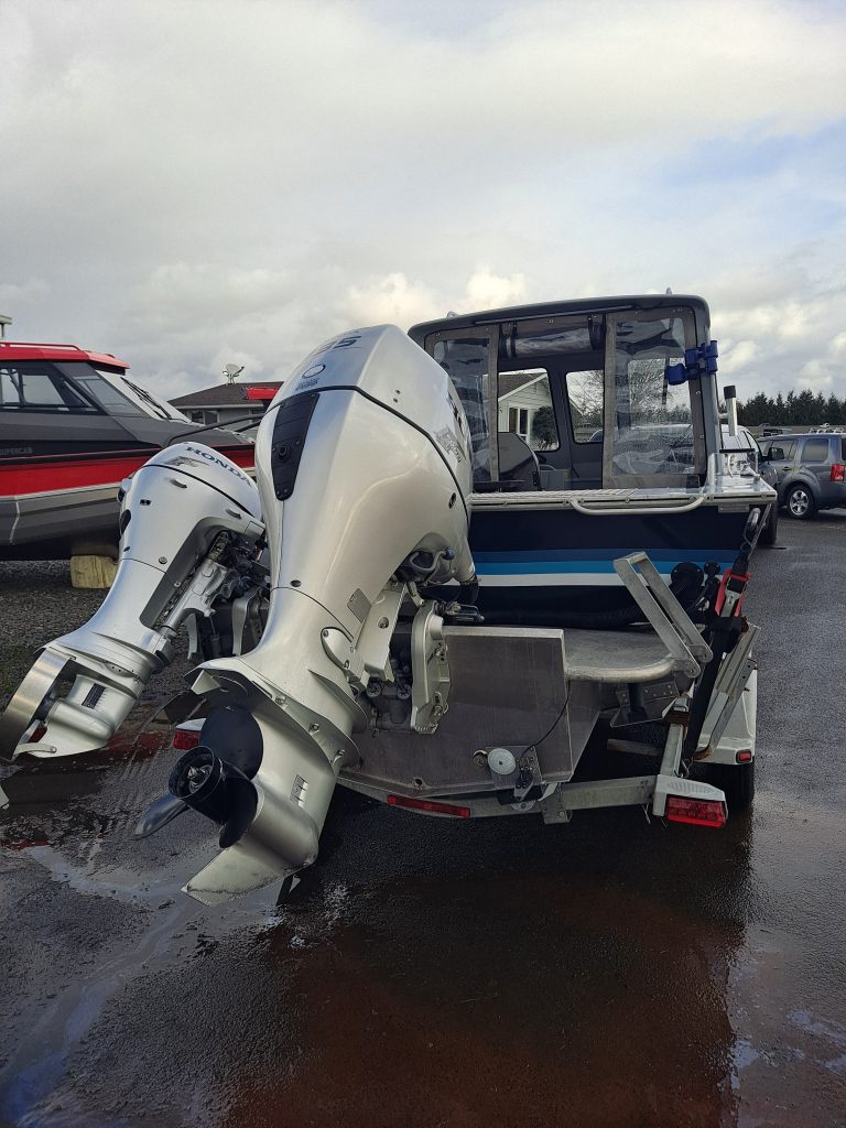 The 2012 Honda BF135 has just under 600hrs and the 2012 Honda BF8 kicker has approx. 200hrs.