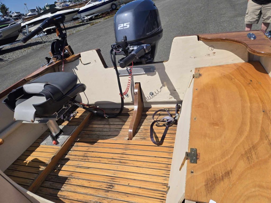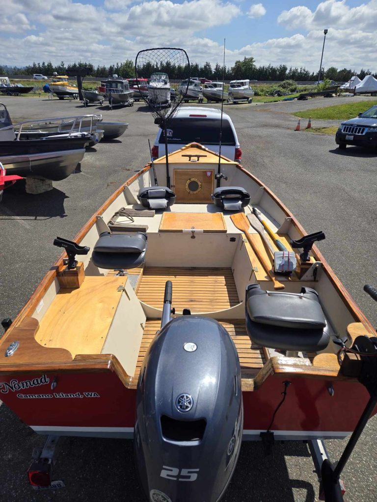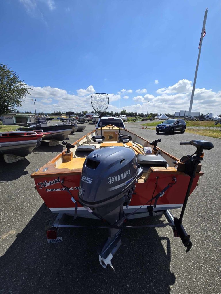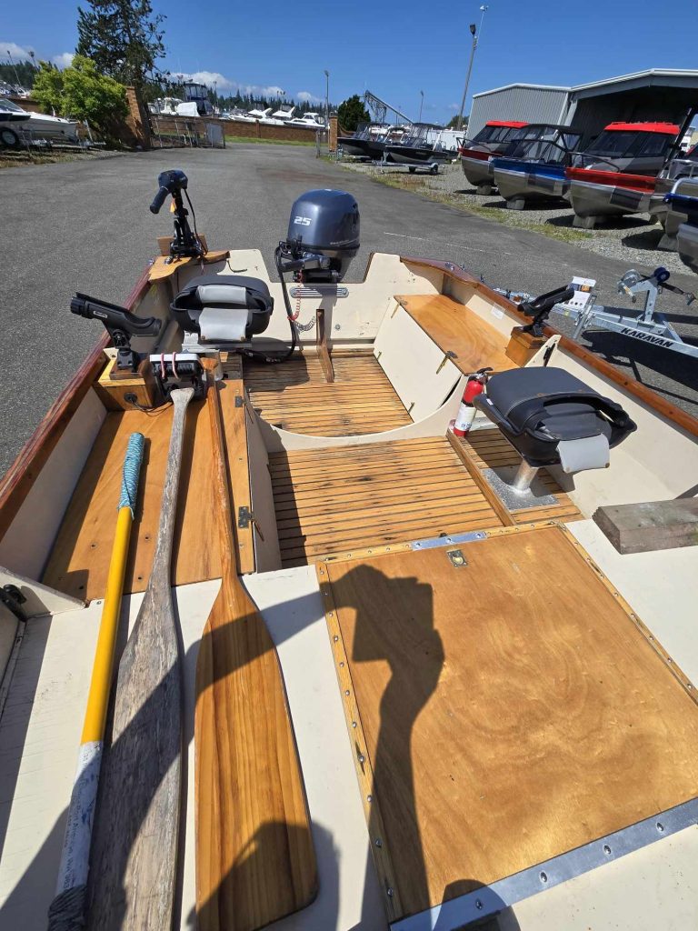 A cool boat ready to fish and crab the PNW. Comes with Anchor and chain, Boat hook, 2 six gallon gas tanks, 4 life jackets and a throwable, salmon net, hand bilge pump, Garmin Echo 50s, two Scotty pole holders, two salmon poles and reels, two paddles, one halibut harpoon