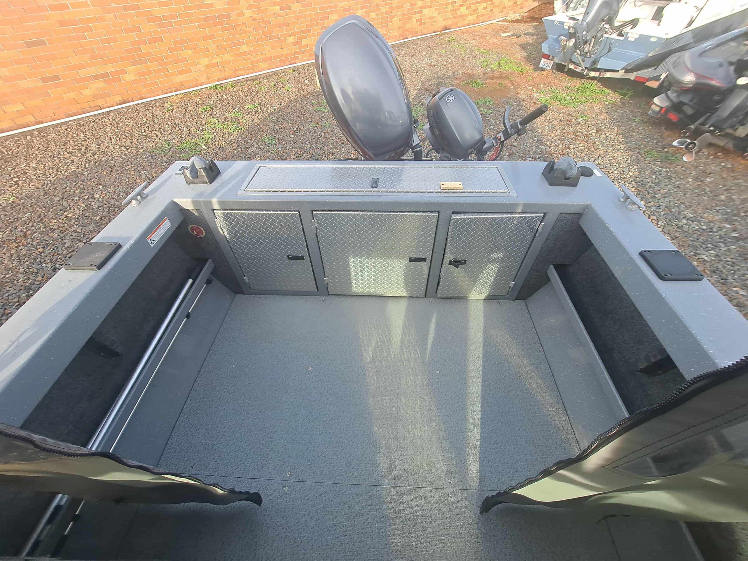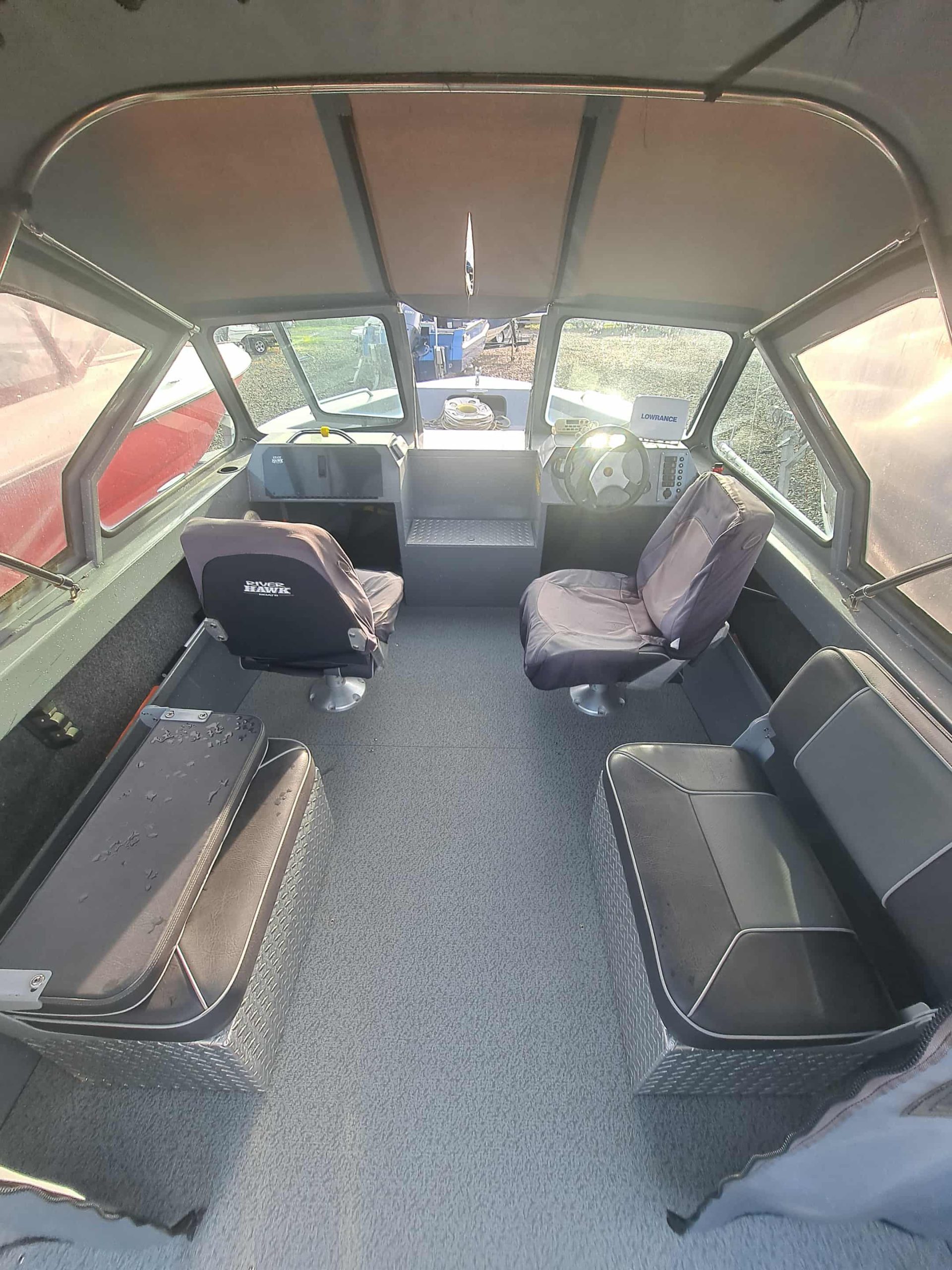 The 2014 River Hawk 19 GB is a rugged, welded-aluminum fishing and recreation boat designed for performance and reliability. With its deep-V hull, reverse chines, and wide 93″ beam, it delivers a smooth, stable ride even in rough water. The extended transom bracket improves balance and keeps the cockpit dry, while the 60-gallon fuel tank provides outstanding range. This versatile model offers ample deck space, secure storage, and the craftsmanship River Hawk is known for—making it a standout in its class for strength and capability.