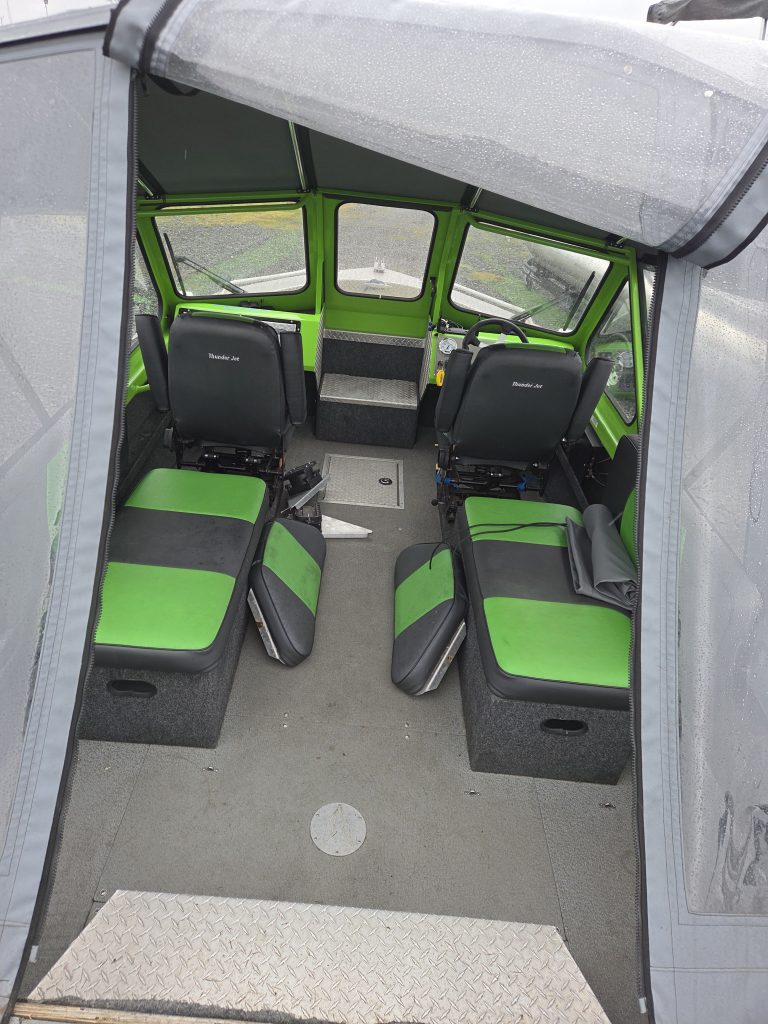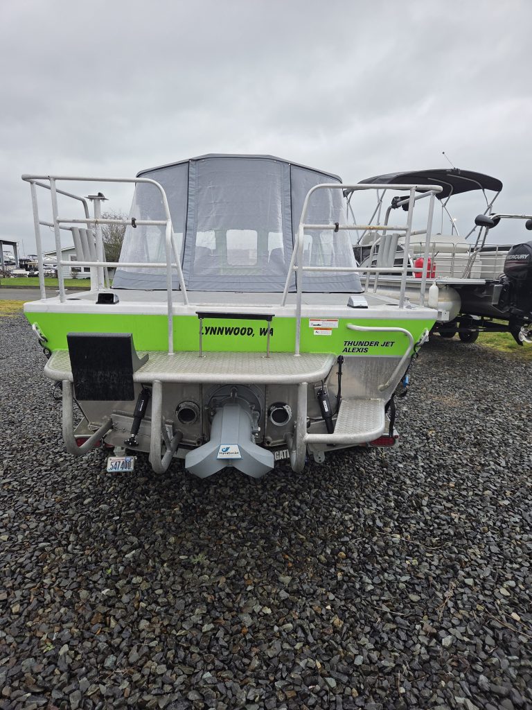The Tri-structure Hull is an exclusive Thunder Jet construction method that integrates the boat’s bottom, sides, and reverse chines into a single reinforced unit to improve stability and durability. Unlike standard hull designs where these components might be welded separately as flat plates, Thunder Jet overlaps and double-welds these one-piece sections to create a high-strength “triangular” structure.