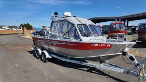 Very clean, well equipped Hewescraft water ready. Rigged with a Yamaha 200 with less than 140hrs. Yamaha 9.9 kicker motor, Garmin screen, Radar, VHF, Trim Tabs, Bluetooth sound system, Scotty electric downriggers, crab pot puller and more. Sitting on a tandem axle EZ Loader 4300 galvanized trailer. Come down to Boat Country and set foot on your next boat!