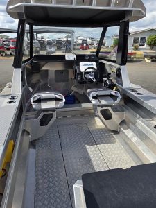 Barely used with only 42 hours it. This 1850 SC comes equipped a 9.9 kicker, Lowrance 12in touch screen, VHF,and Radar. Making it ready to fish.
