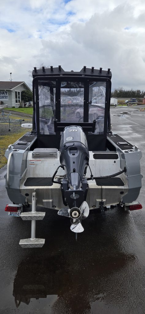 This is a well oiled and well maintained fishing boat. Powered by a 70hp Yamaha on a galvanized steel EZ-Loaded trailer, it comes with a Garmin 94sv screen/transducer, Garmin 115 VHF radio, and Minnkota Terrova Riptide 24v 72″ 80lb bow mount trolling motor with a 110ah 24v Dakota Lithium battery in a custom forward battery box. There is a live bait tank in the transom that serves as a great bleed box, and a wash-down hose as well.